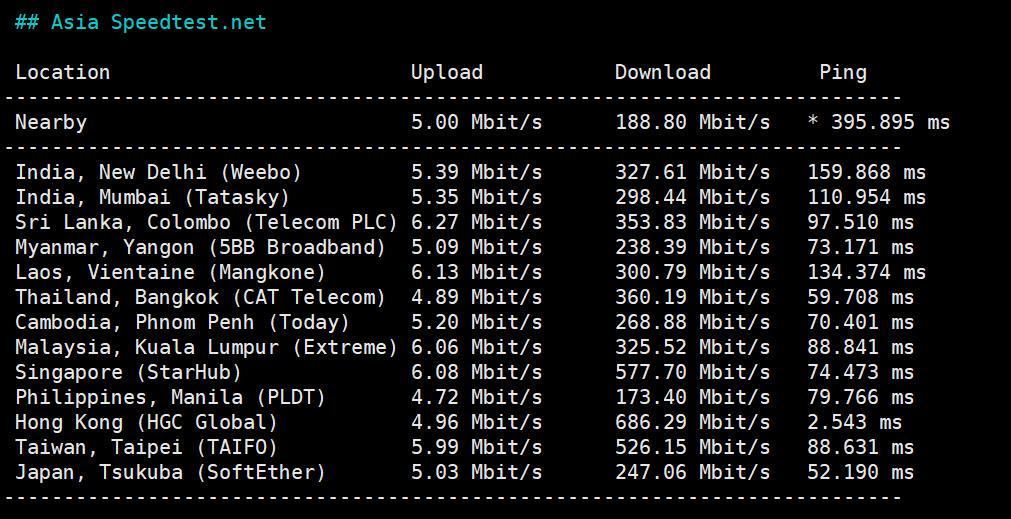 speedtest亚洲节点上行下行测试: