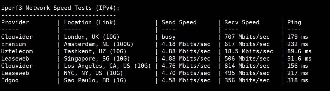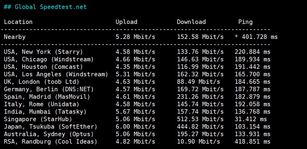 SpEedtest全球节点上行下行测试: