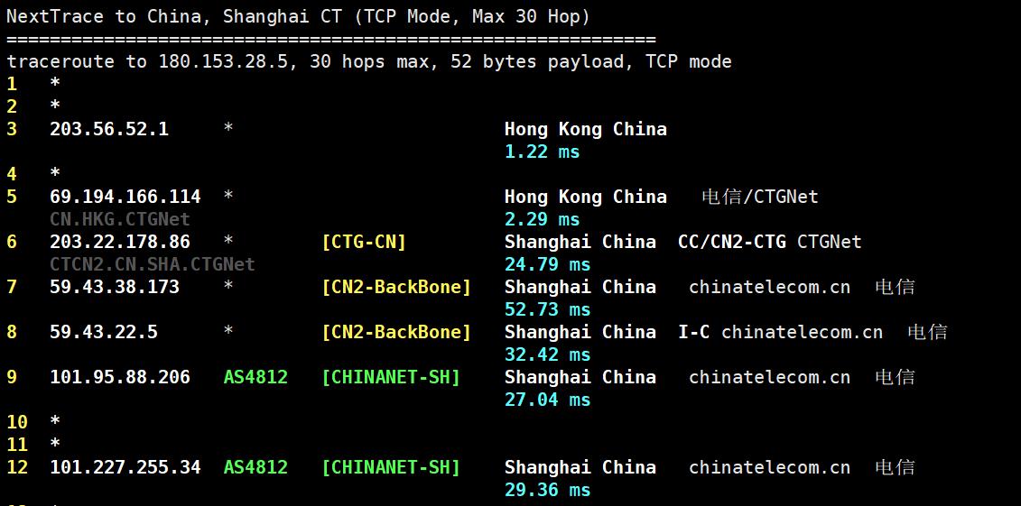 电信去程测试: