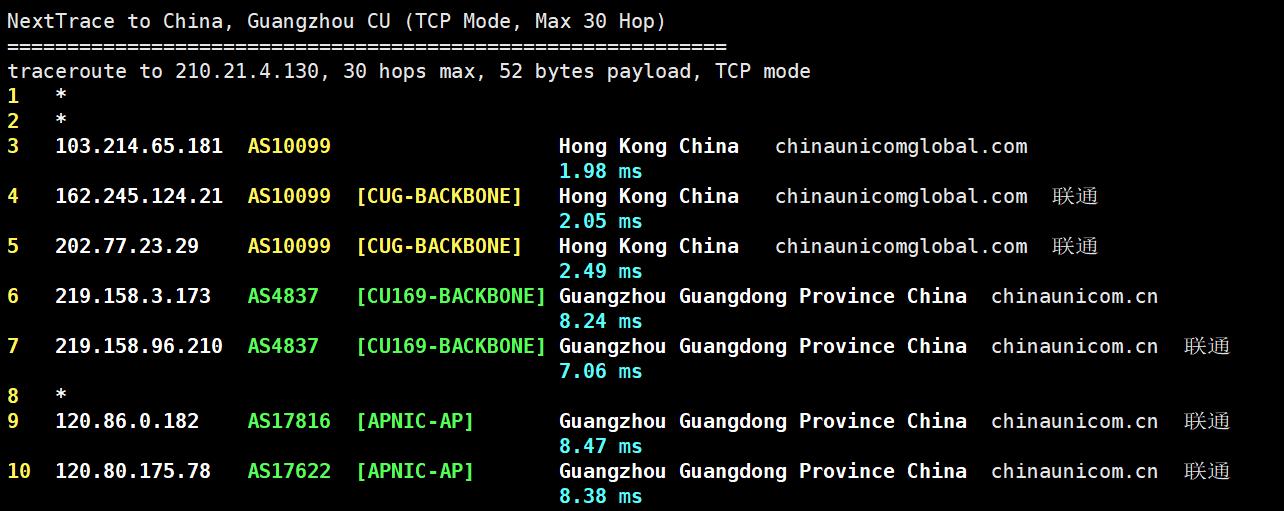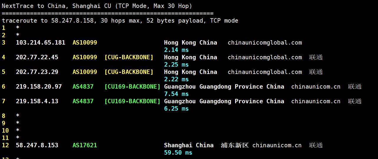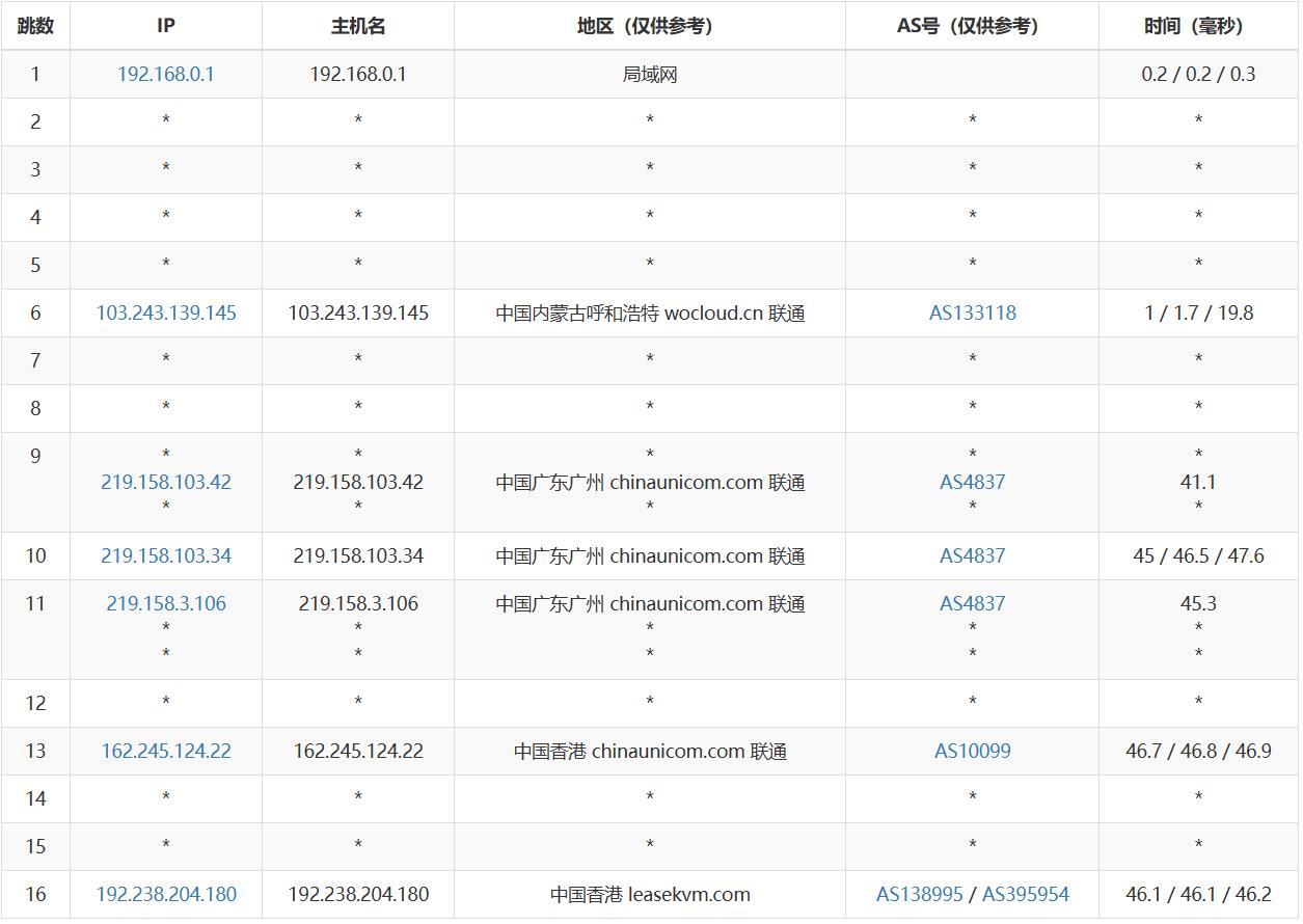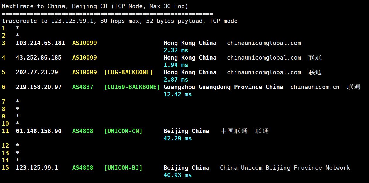 联通去程测试: