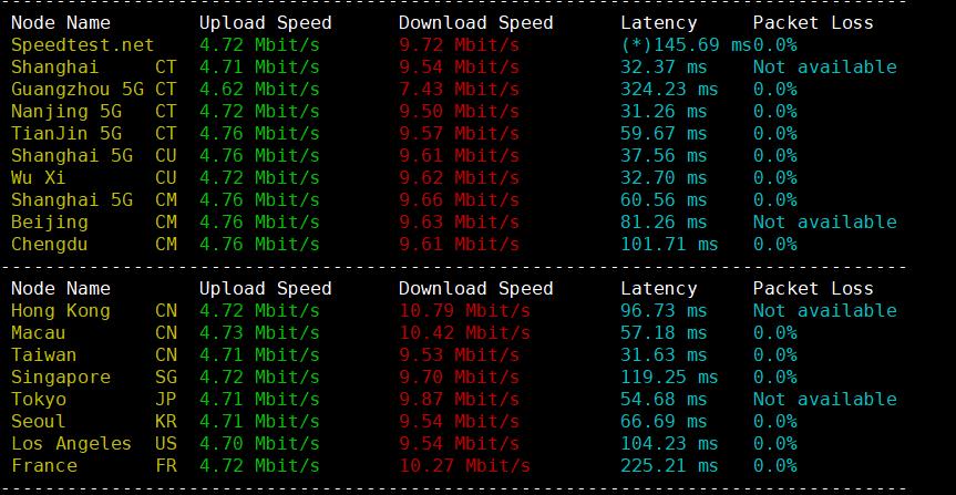 speedtest.net国内国外上行下行测试: