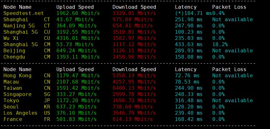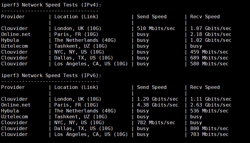 IPerf3欧美地区的节点的测试:
