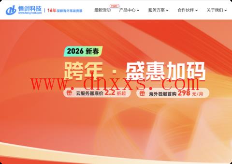 恒创科技【2026跨年盛会】活动正在进行,云服务器最低2.2折,一年只需要262元,买一年送2个月,买3年送1年(月均低至15元);海外独服298元每月(限时优惠),低至3折,E3/E5/Glod多种配置选择;更有低价大带宽/多IP站群/CloudFlare DDoS防护/GPU服务器,RTX 3090显卡,5折优惠;CPU全新升级AMD EPYC/Gold 6138,具备高性能/高稳定性/低延迟,限量提供日本原生IP,全场产品购买及续费永久优惠。(本场活动产品续费同享,可免费试用和转移剩余时长服务)!